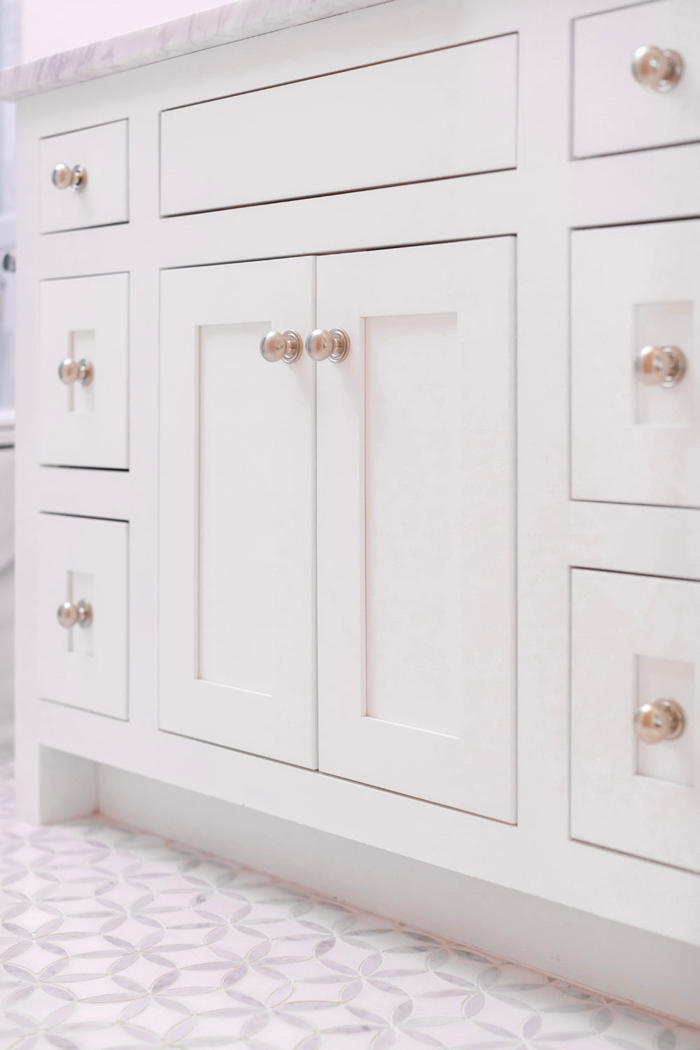 Art & Forge's hardware plays a starring role in my recent project. From appliance pulls that echo the kitchen backsplash motif to the primary bath acrylic knobs that pair perfectly with the glass-stemmed lighting, it's the kind of design harmony that's rare!